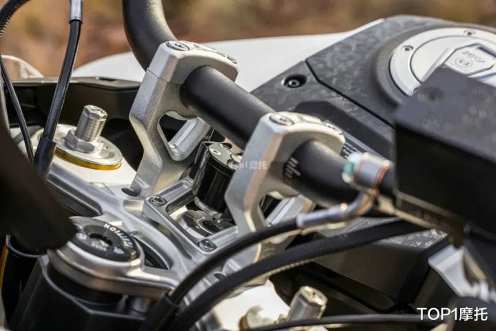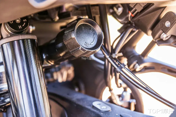 此外,无极DS800X还配备了,同级别车型中罕见的,顶部安装可调旋转(径向)CNC铝制转向阻尼器,即便是在行驶中也能徒手调节。这一配置也能大幅度降低,因为前轮比较窄而导致高速出现稳定性不足的情况。其他功能配置